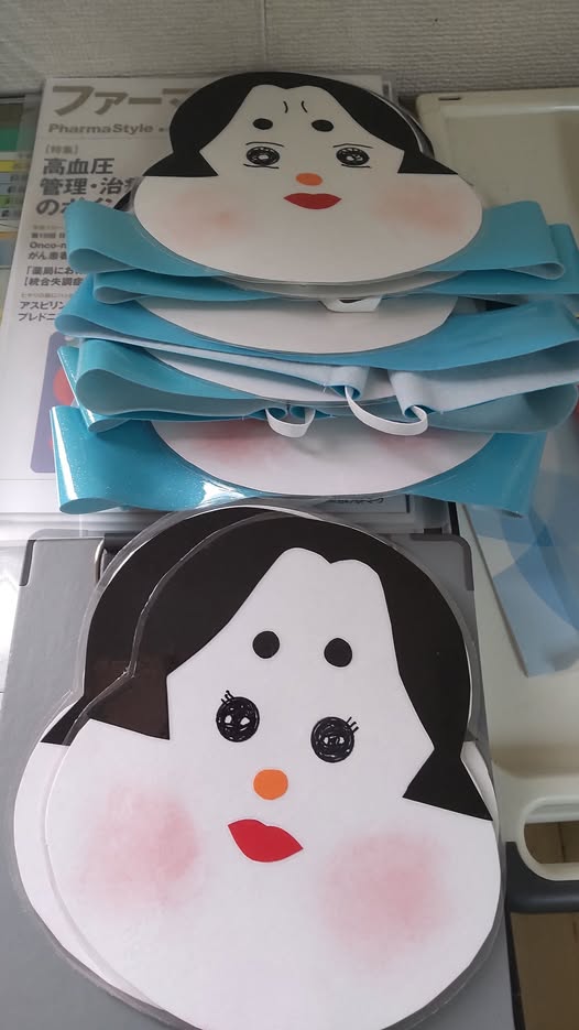患者さん用には、お多福のお面をご用意。お多福の顔は患者さんの手作りです。それぞれ表情の違う、とてもかわいらしいお多福が完成しました。お面をつけた患者さんが、一生懸命豆を投げる姿がとても印象的でした。
